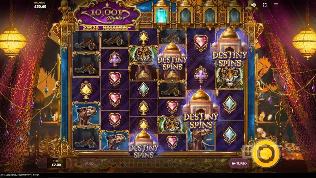 经典阿拉伯风老虎机,背景设定在奢华宫殿中,还有四大特殊功能随时触发惊喜~虽然RTP稍低(95.71%),但视觉满分+中波动玩起来就是顺!很适合轻松转又想碰碰大奖的你~